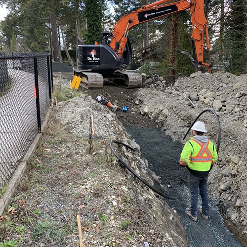 Dr. Hoe Civil Construction brings extensive hands-on experience in all aspects of excavation and earthworks, making us a trusted choice for hardscaping services in Victoria and across Vancouver Island. With a strong background in large-scale civil and commercial projects, including road building, foundation excavation, and water and sewer perimeter drain installations, our team understands how to handle complex ground conditions with precision.